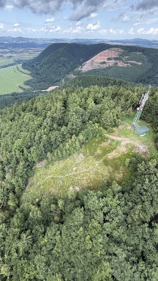 Přistávání dole na louce, parkování u silnice, nahoru se chodí pěšky.